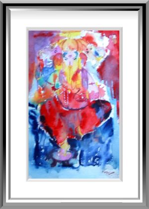 Title : Ganesha004 Dimensions : 16"x20" Medium : Water color on Handmade paper Price : On Call Comments : Reproduced from front cover of India Today
