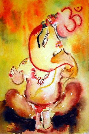 Title : Ganesha002 Dimensions :16"x20" Medium : Water color on Handmade paper Price : 250 USD Comments :