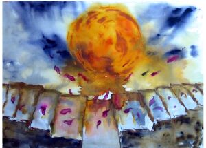 Title : Cr001 "Sun on Steps" Dimensions :20"x16" Medium : Water color on Handmade paper Price : 350 USD Comments :